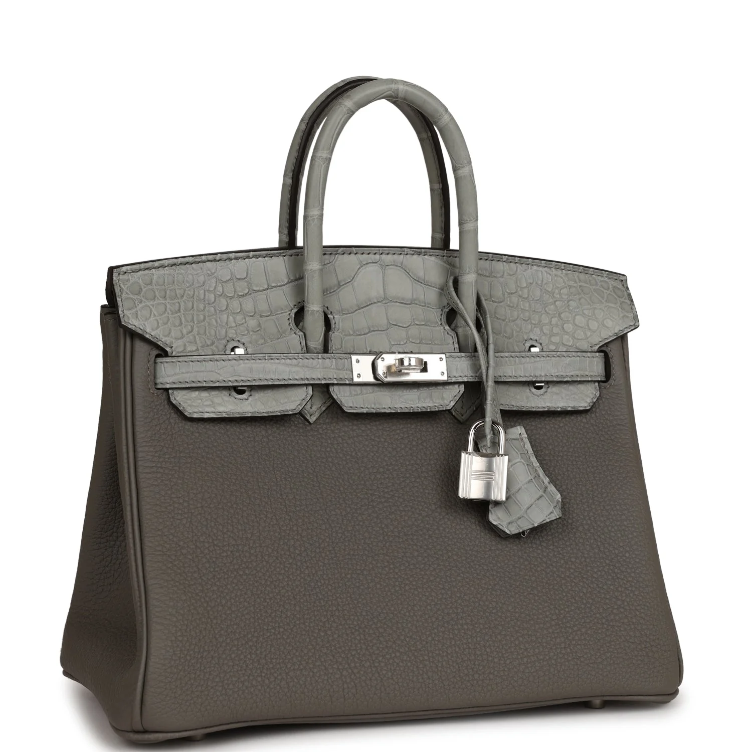 Hermès Birkin 25 Gris Meyer Togo and Gris Ciment Matte Alligator Touch Palladium Hardware