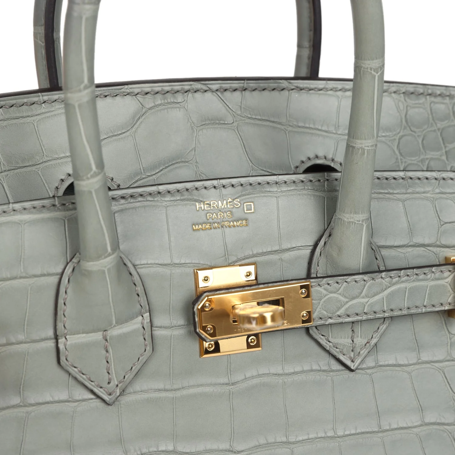Hermès Birkin Sellier 25 Gris Ciment Matte Alligator Gold Hardware