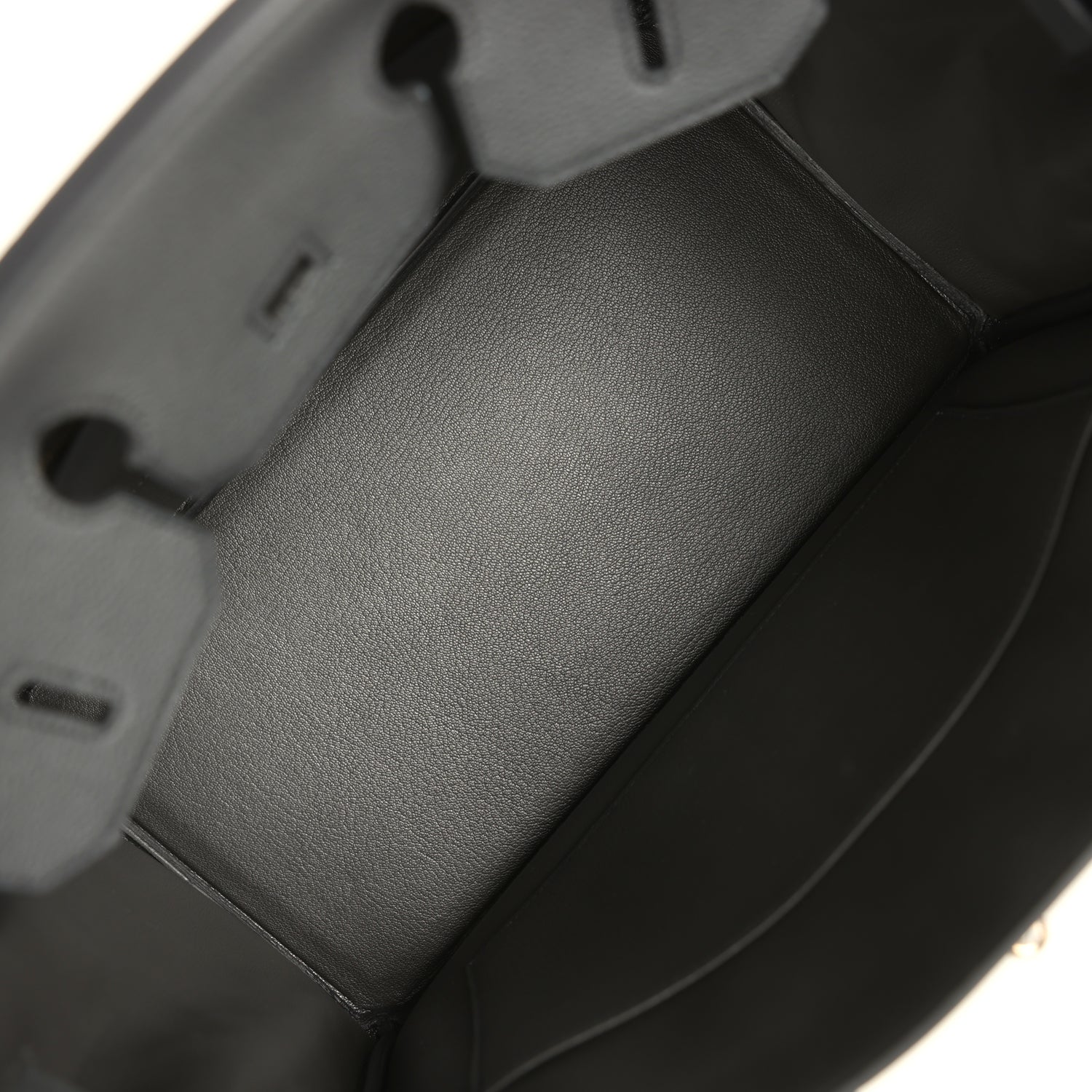 The interior is lined with Plomb chevre leather and has one zip pocket with an Hermès engraved zipper pull and an open pocket on the opposite side.