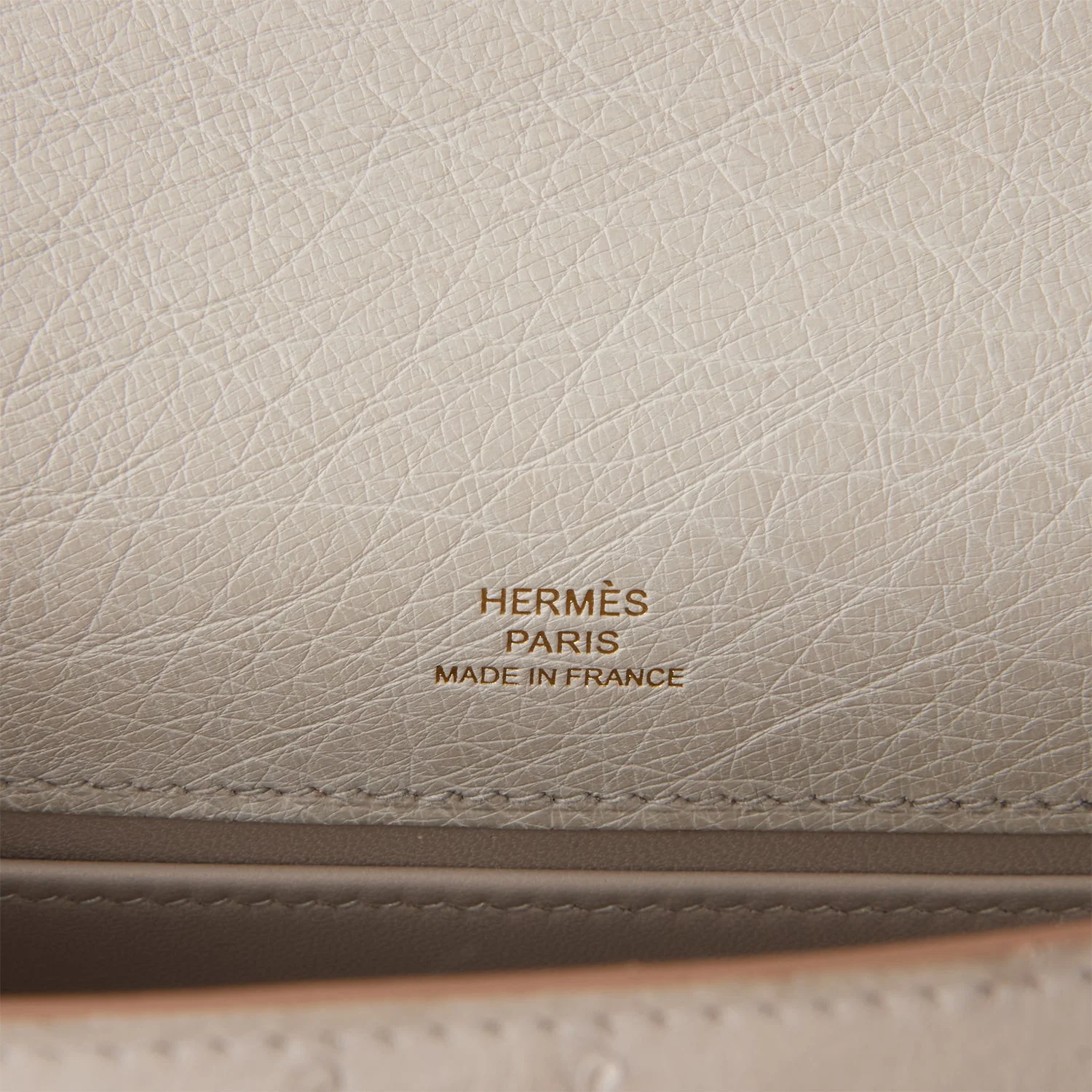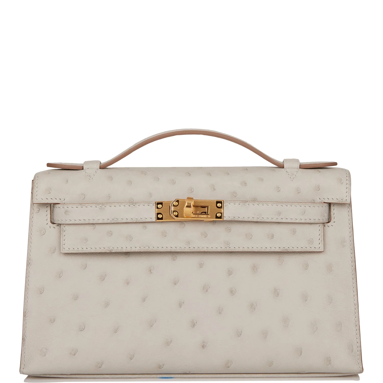 Hermès Kelly Pochette Gris Perle Ostrich Gold Hardware
