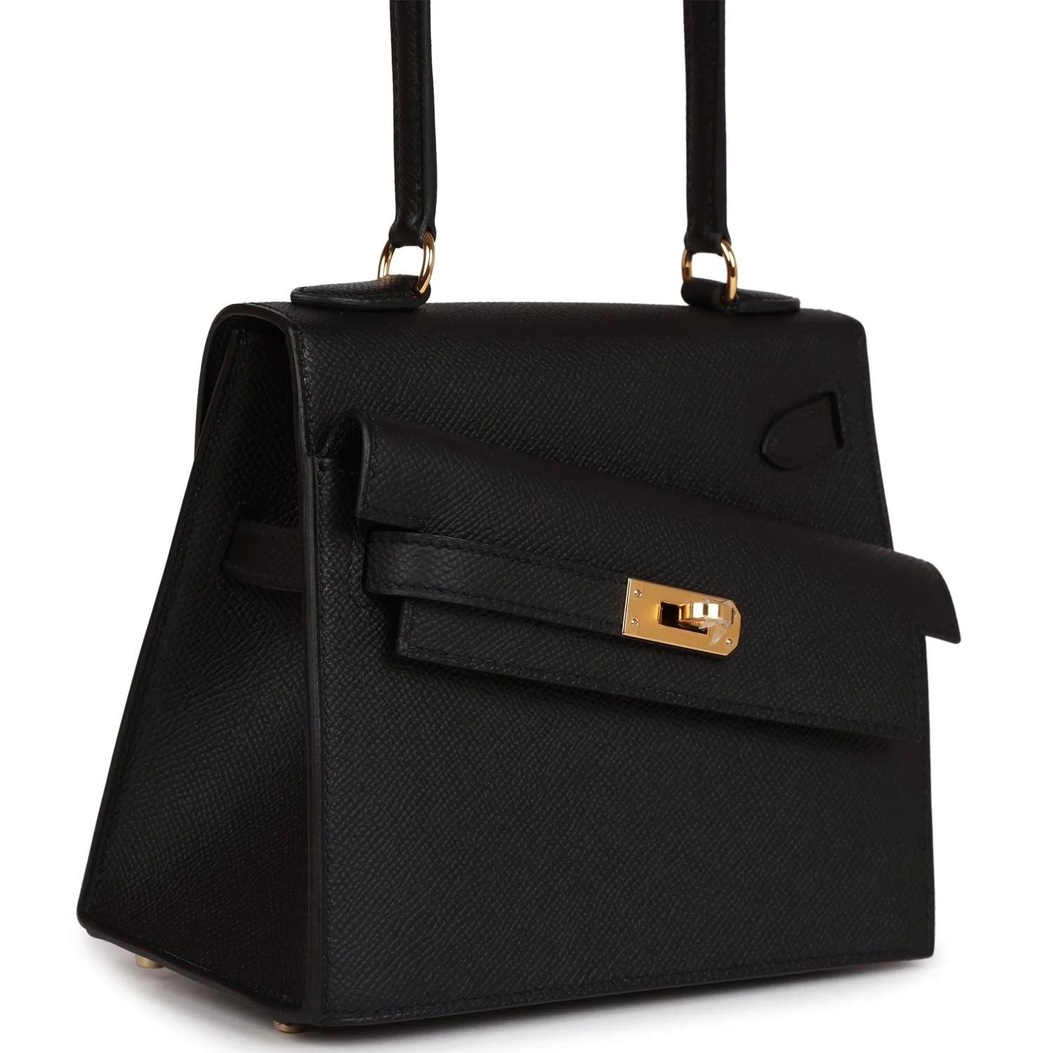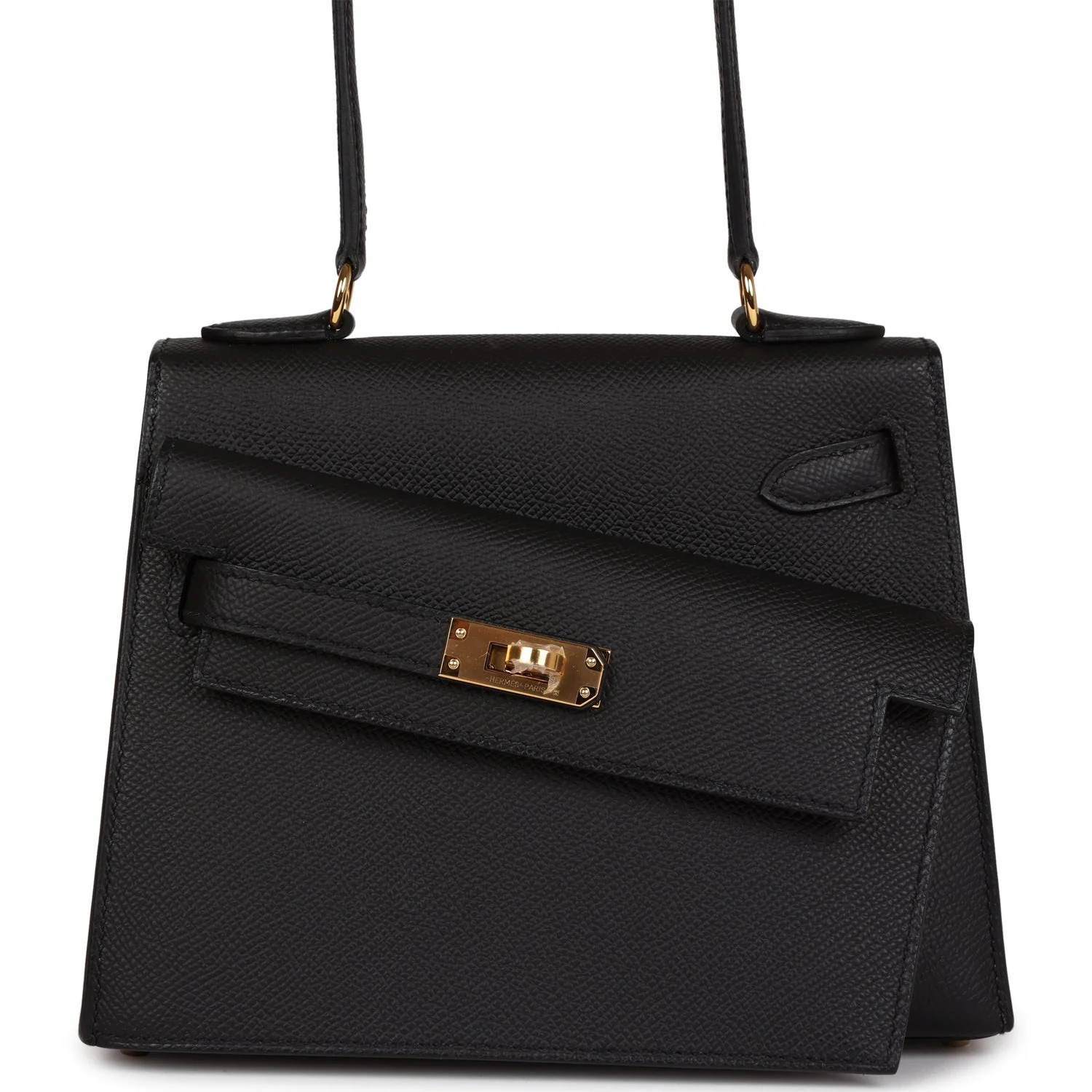 Hermès Kelly Sellier en Desordre 20 Black Epsom Gold Hardware