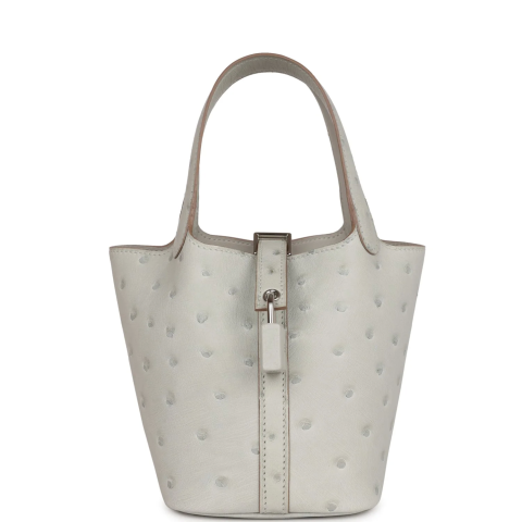 Hermès Micro Picotin 14 Gris Perle Ostrich Palladium Hardware