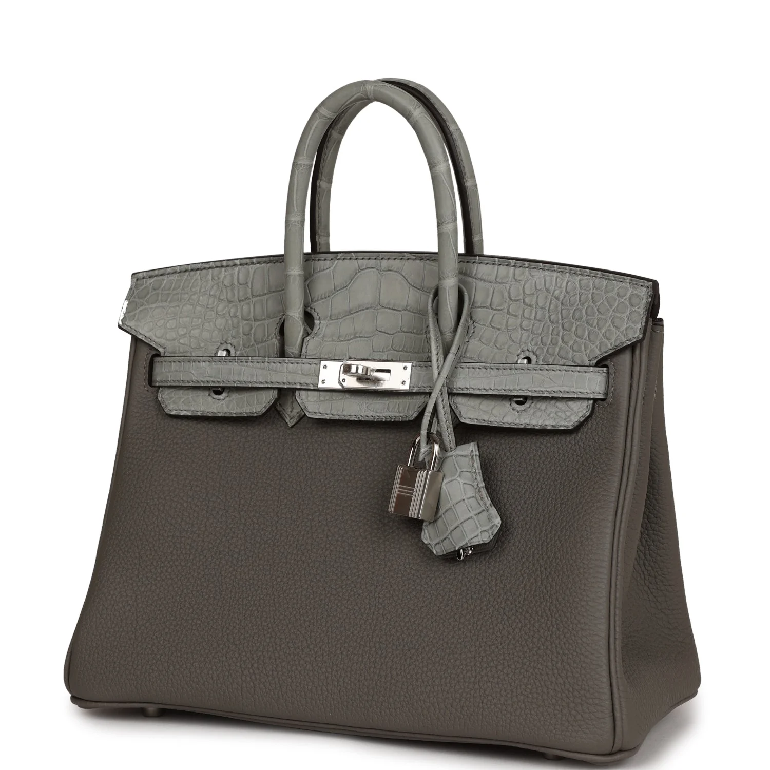 Hermès Birkin 25 Gris Meyer Togo and Gris Ciment Matte Alligator Touch Palladium Hardware