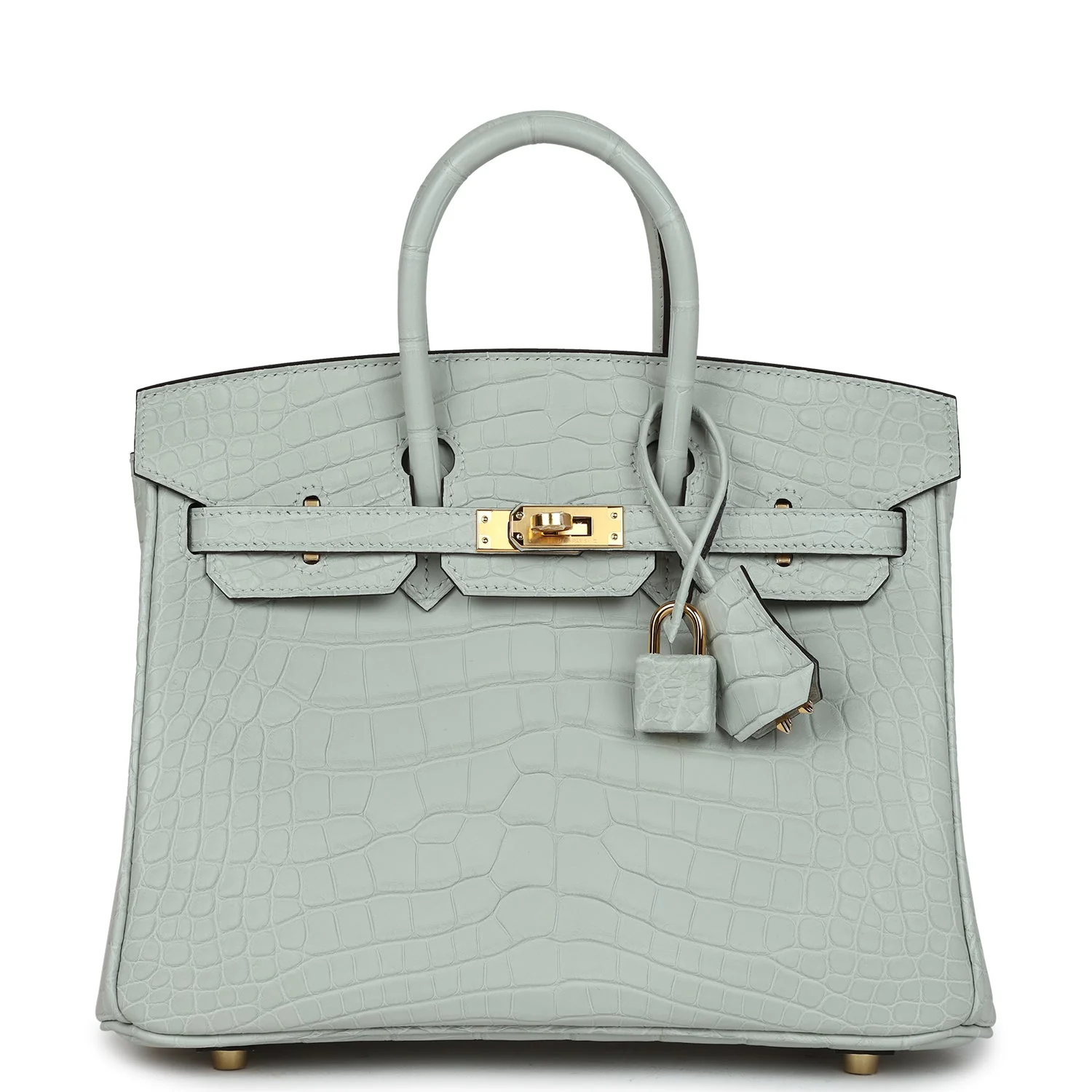 Hermès Birkin 25 Gris Neve Matte Alligator Gold Hardware