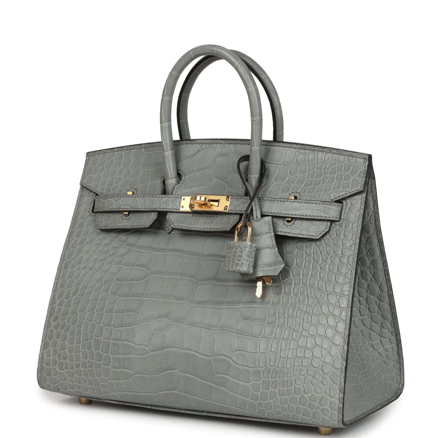 Hermès Birkin Sellier 25 Gris Ciment Matte Alligator Gold Hardware