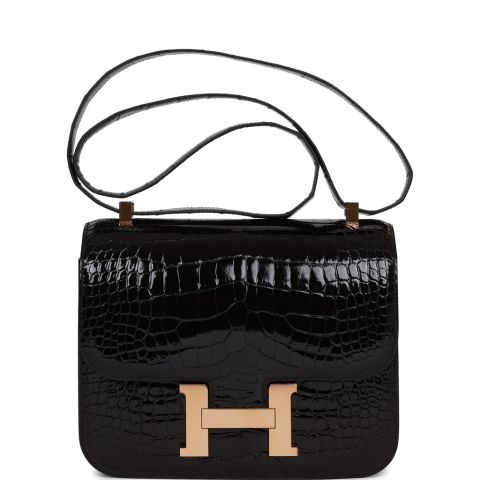 Hermes Constance 24 Black Shiny Alligator Rose Gold Hardware