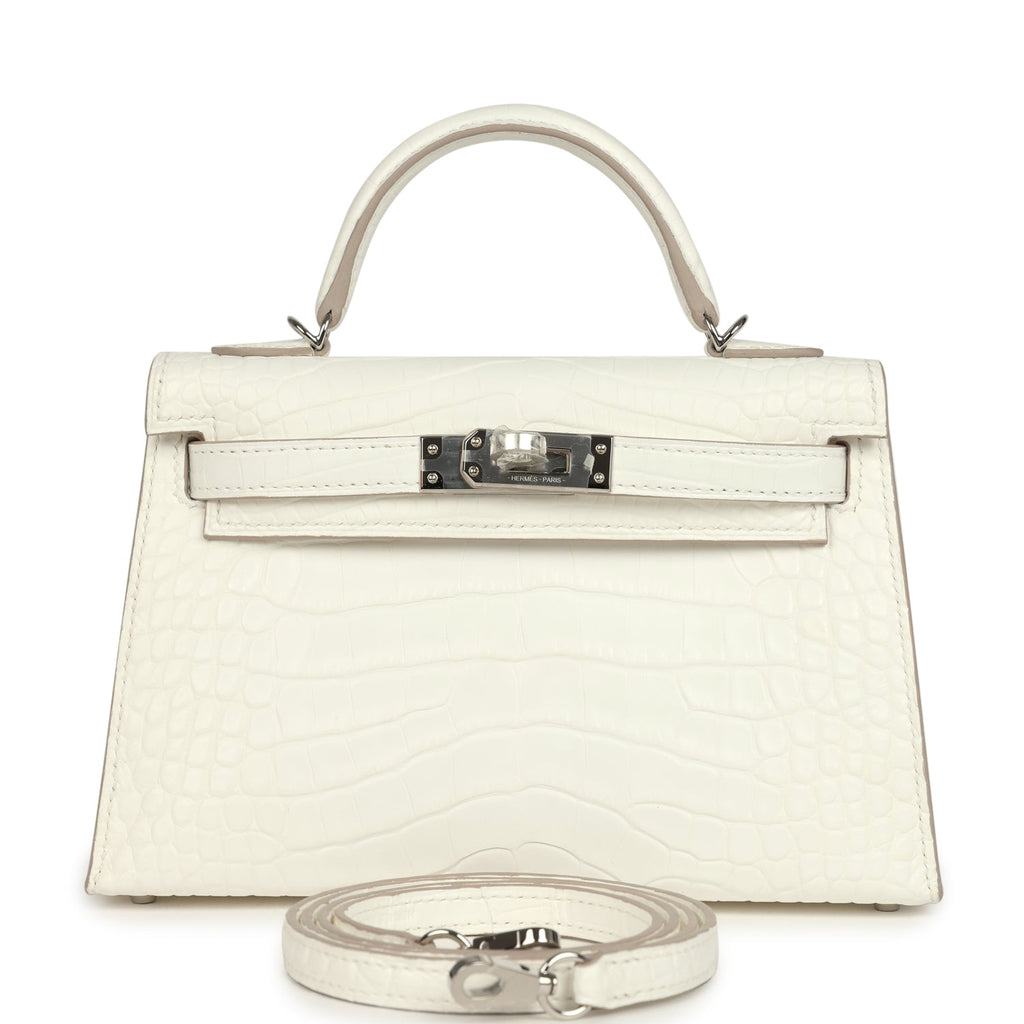 Hermes Kelly Sellier 20 Creme Chantilly Matte Alligator Palladium Hardware