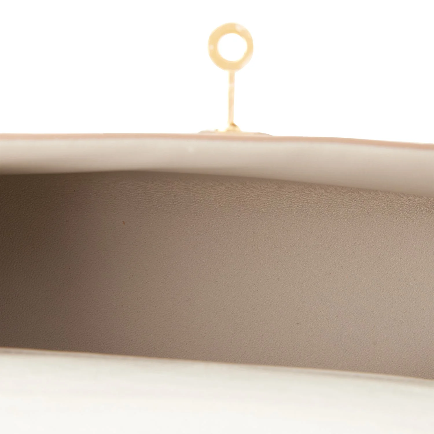 The interior is lined with Gris Perle chevre and has an open wall pocket.