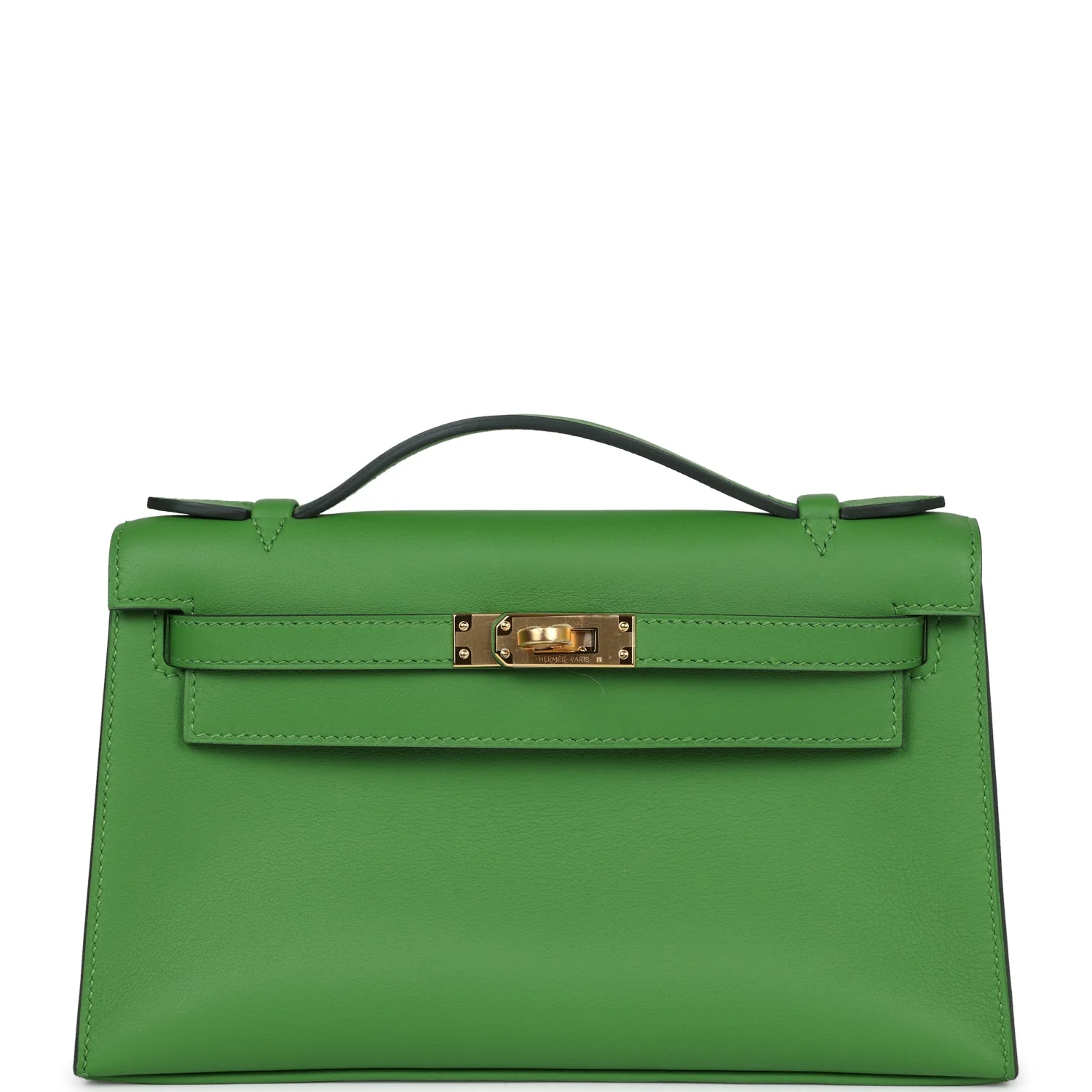 Hermès Kelly Pochette Vert Yucca Swift Gold Hardware