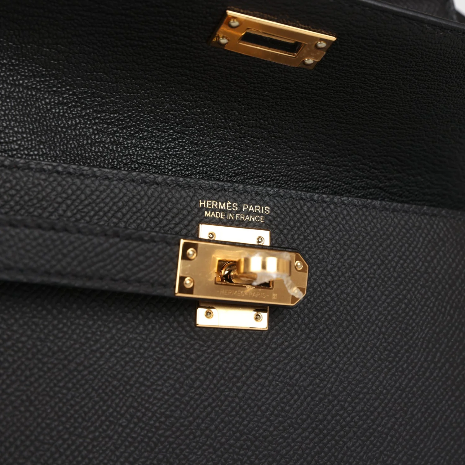 Hermès Kelly Sellier en Desordre 20 Black Epsom Gold Hardware