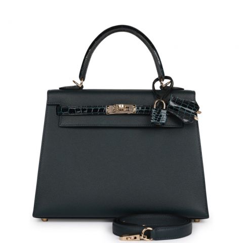 Hermes Kelly Sellier 25 Vert Rousseau Madame and Shiny Niloticus Crocodile Touch Gold Hardware