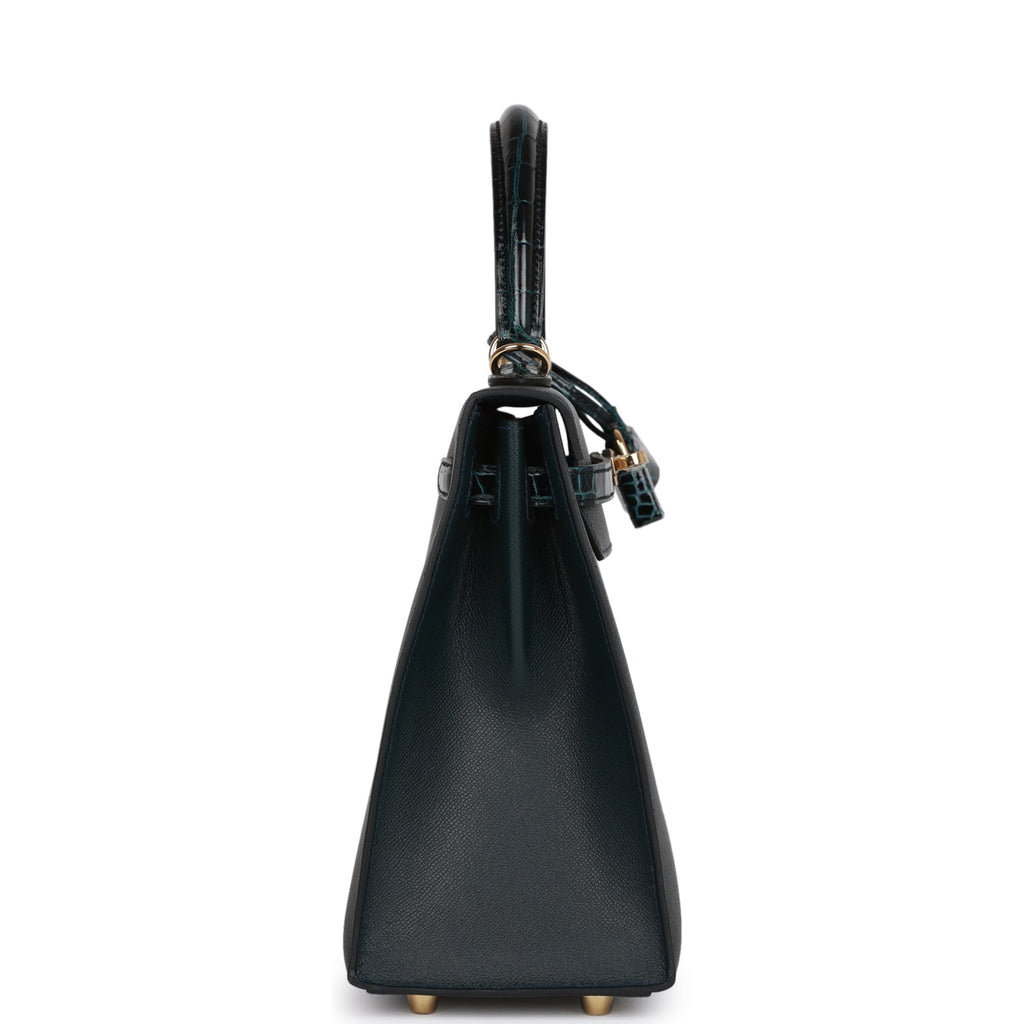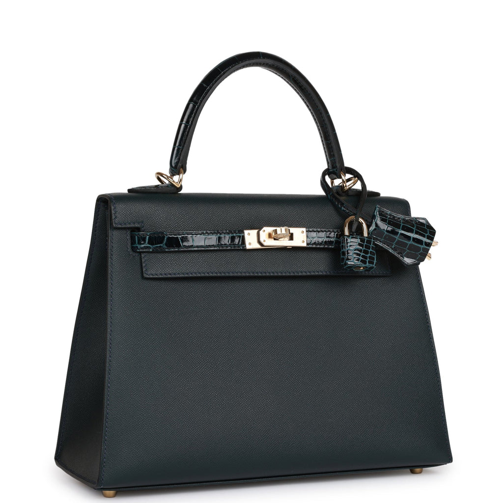 Hermes Kelly Sellier 25 Vert Rousseau Madame and Shiny Niloticus Crocodile Touch Gold Hardware