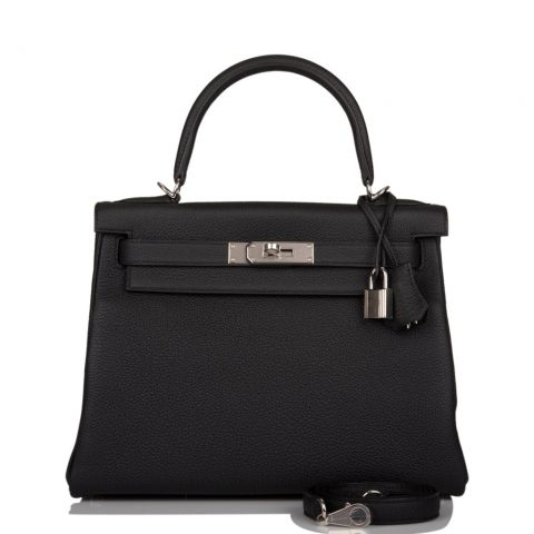 Hermes Kelly Retourne 28 Black Togo Palladium Hardware