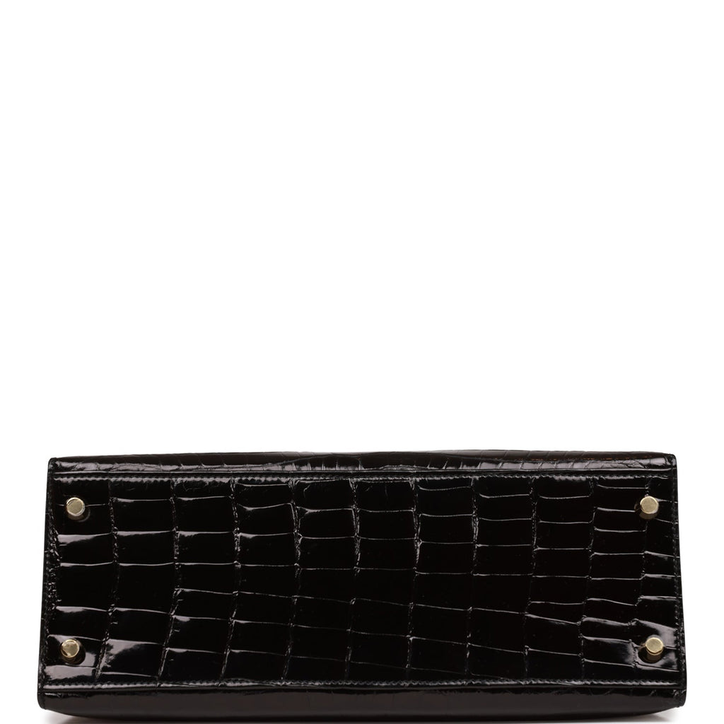 Hermes Kelly Sellier 28 Black Shiny Niloticus Crocodile Gold Hardware