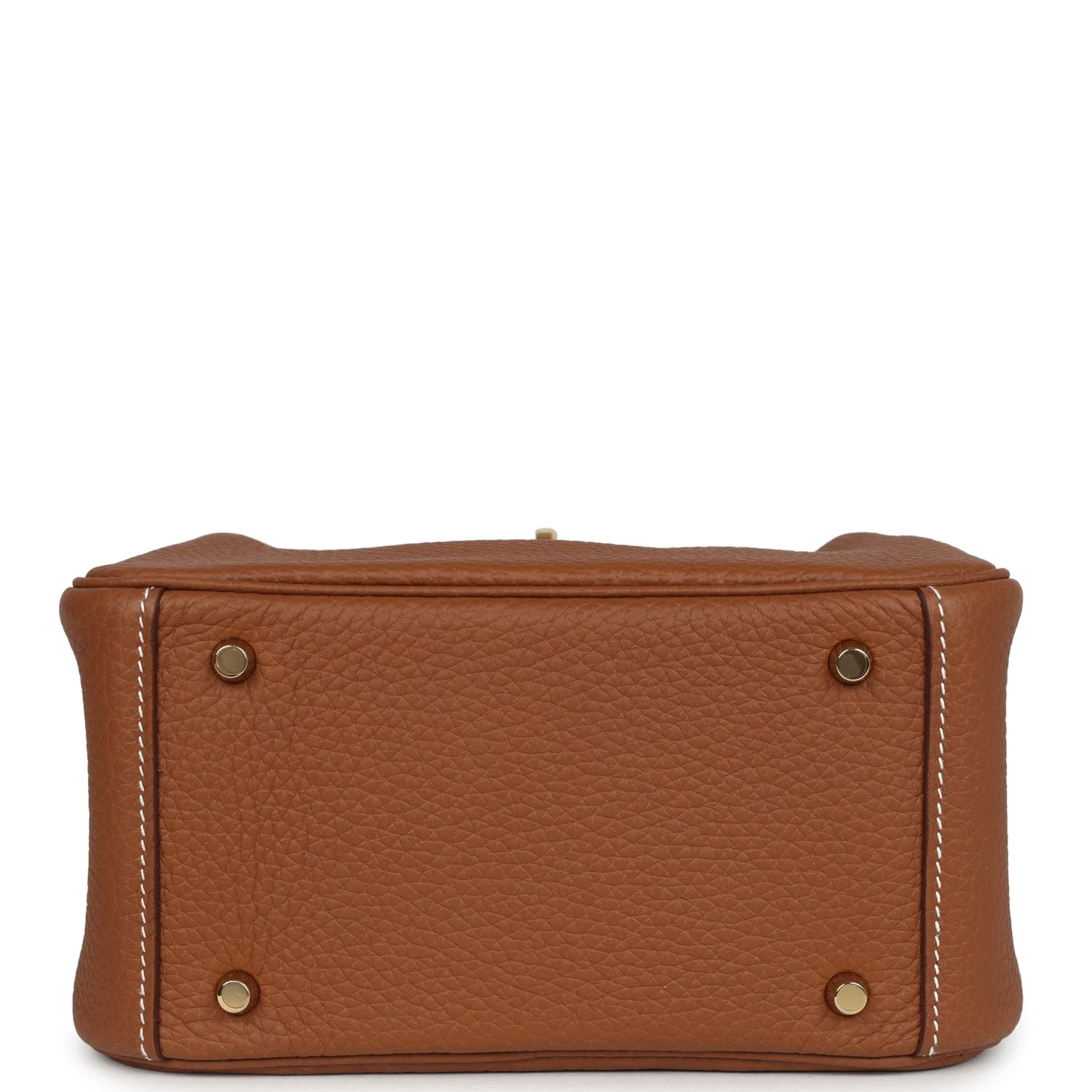 This Mini Lindy is in Gold clemence leather with gold hardware and has contrast stitching, double zipper pulls, front Hermès twist lock, single pocket on each side, two rolled top handles linked by a flat shoulder strap.
