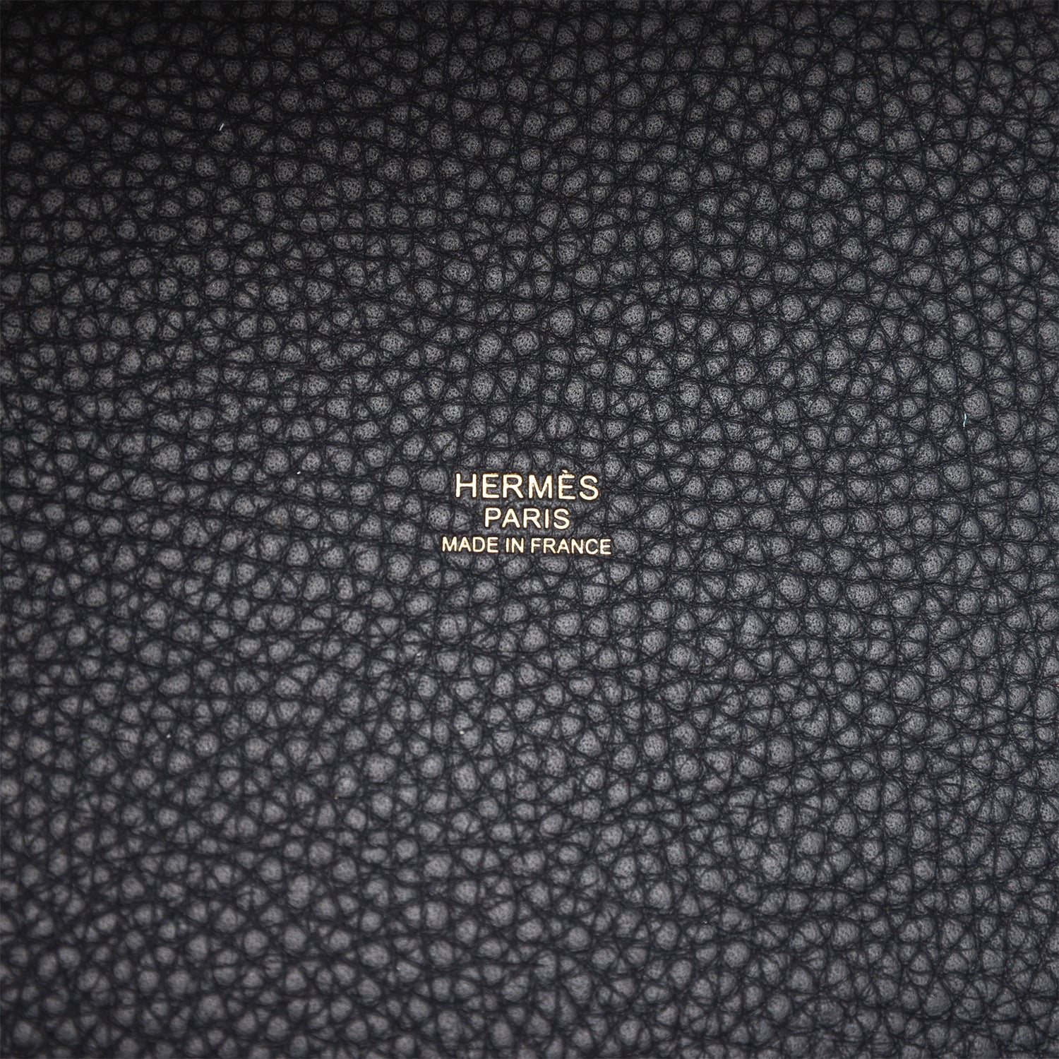 This Picotin Lock is in Caban clemence leather with gold hardware and has tonal stitching with two top handles.